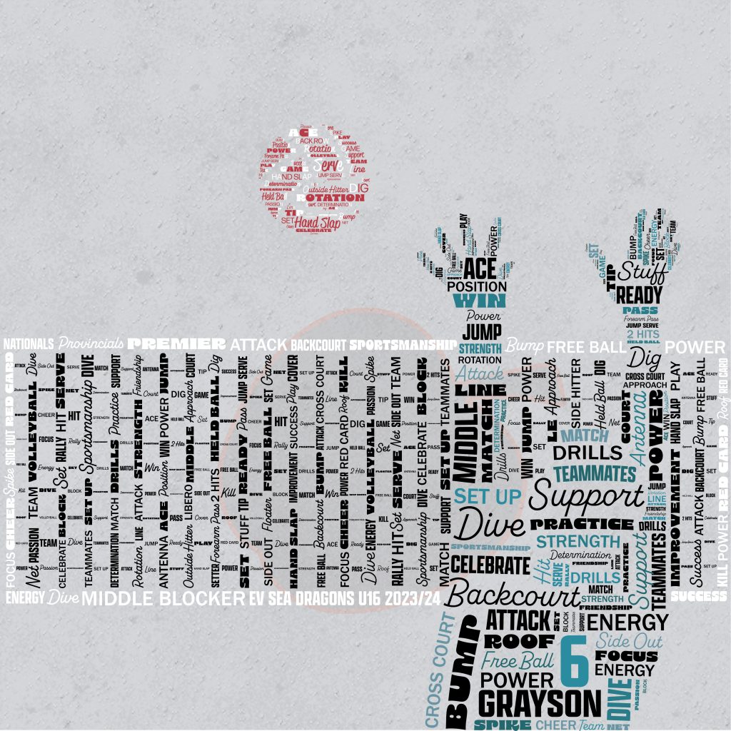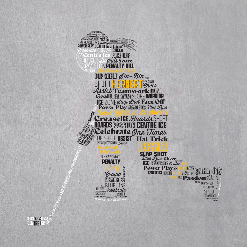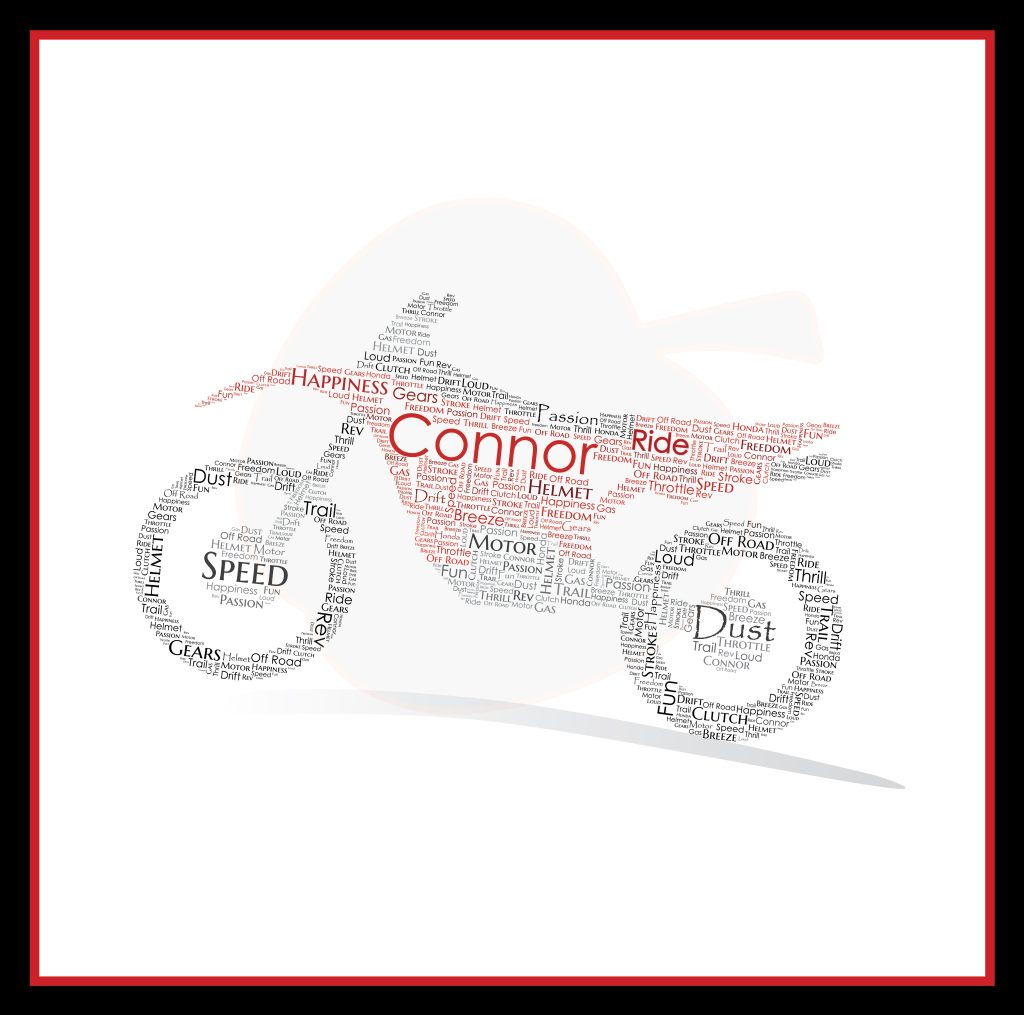 Once we have the design layout figured out, we then pick the words to be used to make the picture (usually about 30 words). Then the colours, personalized options and also the size of the print.